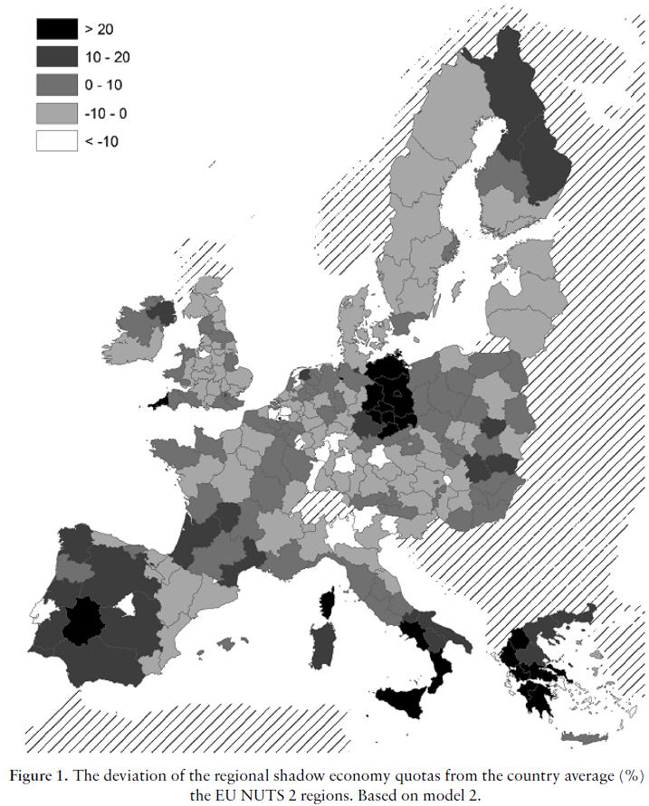 Il Corriere della Sera del 3 aprile riporta uno studio dell’Agenzia delle entrate, secondo cui il contribuente italiano evaderebbe in media 17 euro e 87 centesimi per ogni 100 euro di imposte versate al fisco. Se si escludono i redditi con ritenuta alla fonte, l’evasione sugli altri redditi salirebbe al 38,41%. Si va da un minimo del 10,93% (le province dei grandi centri urbani produttivi: Milano, Torino, Genova, Roma, Lecco Cremona, Brescia) ad un massimo del 65,67% in provincia di Caserta, Salerno, Cosenza, Reggio, Messina (figura a colori, clicca per ingrandire). Non è un dato sorprendente. L’evasione fiscale è maggiore dove più diffusa è l’economia sommersa. La vasta letteratura in argomento suggerisce che l’ economia sommersa e tende ad essere più elevata nelle regioni con reddito procapite e crescita più bassi, maggiore dissoccupazione, minor partecipazione alla forza lavoro, più elevata pressione fiscale, peggior percezione del fisco, maggior peso dello stato nell’economia, minore tutela dei diritti di proprietà e maggior peso di corruzione e criminalità. I confronti internazionali sono impietosi: l’economia sommersa, misurata in rapporto al PIL, raggiunge in Campania, Calabria e Sicilia i livelli massimi in Europa (con Grecia e Polonia, v. figura in bianco e nero). Ma l’aspetto che mi sembra più grave e sconsolante sta nel fatto che il nostro paese, pur partendo da livelli molto più elevati della media OECD (figura in basso, tratta da Buehn and Schneider, 2007) non abbia mostrato negli anni recenti alcun segno di progresso.