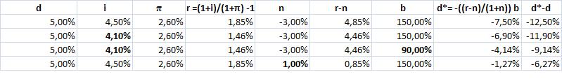 La ragione sta nel fatto che i dati disponibili per il 2011 (un disavanzo primario (d) intorno al 5% del PIL, un tasso di interesse (medio) sul debito (i) che il Ministro dell’economia greco stima al al 4,5%, un’inflazione (π) al 2,6%, un crescita negativa di circa 3 punti ed un rapporto debito/PIL al 150%), indicano che sarebbe necessario raggiungere e mantenere nel tempo un surplus di bilancio (d*) di 7,5 punti di PIL , solo per arrestare la crescita del rapporto debito/PIL (v. prima riga nella Tabella 1). Dunque il governo greco dovrebbe mettere in atto un’ulteriore manovra di tagli equivalenti a 12,5 punti di PIL , e siccome difficilmente potrebbe farlo entro l’anno, per un certo tempo il debito è destinato a crescere.